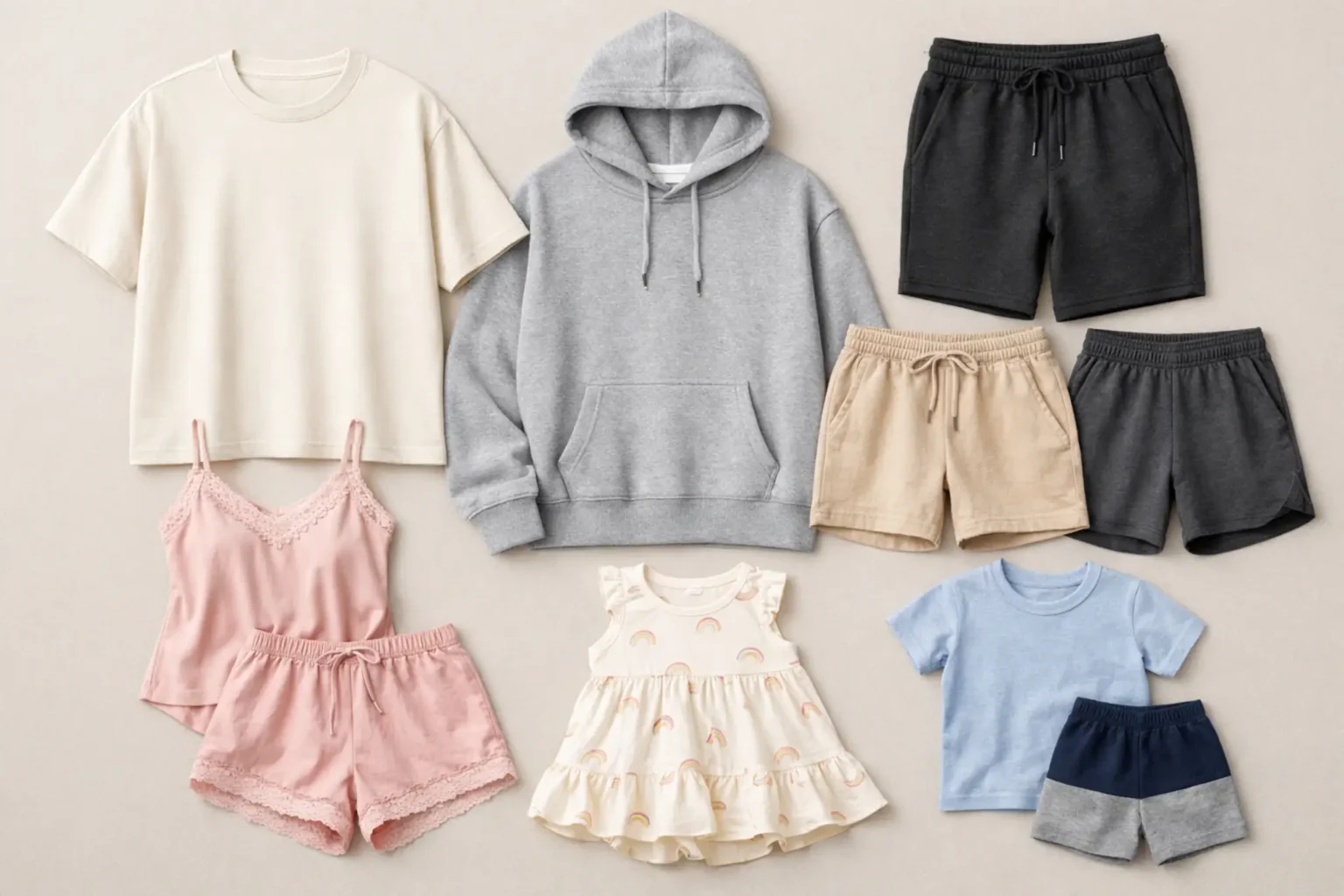 Multi Category Apparel manufacturing allows brands to develop T shirt manufacturing programs, hoodie manufacturing lines, jogger pant manufacturing collections, shorts manufacturing ranges, sleepwear manufacturing capsules, and kidswear manufacturing segments within one structured supply chain.