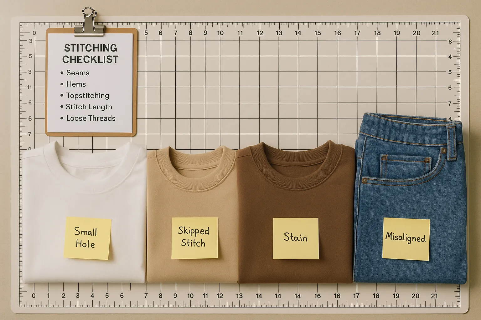 Our team or assigned factory QC monitors stitching lines daily to catch early-stage issues - including skipped stitches, panel mismatches, seam puckering, or thread breaks - before these faults affect a large volume of your bulk order.